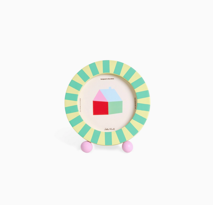 Cadre photo Carrousel Vert rond, par Helio Ferretti, d'une forme ronde et amusante, parfaite pour mettre en valeur une jolie photo.