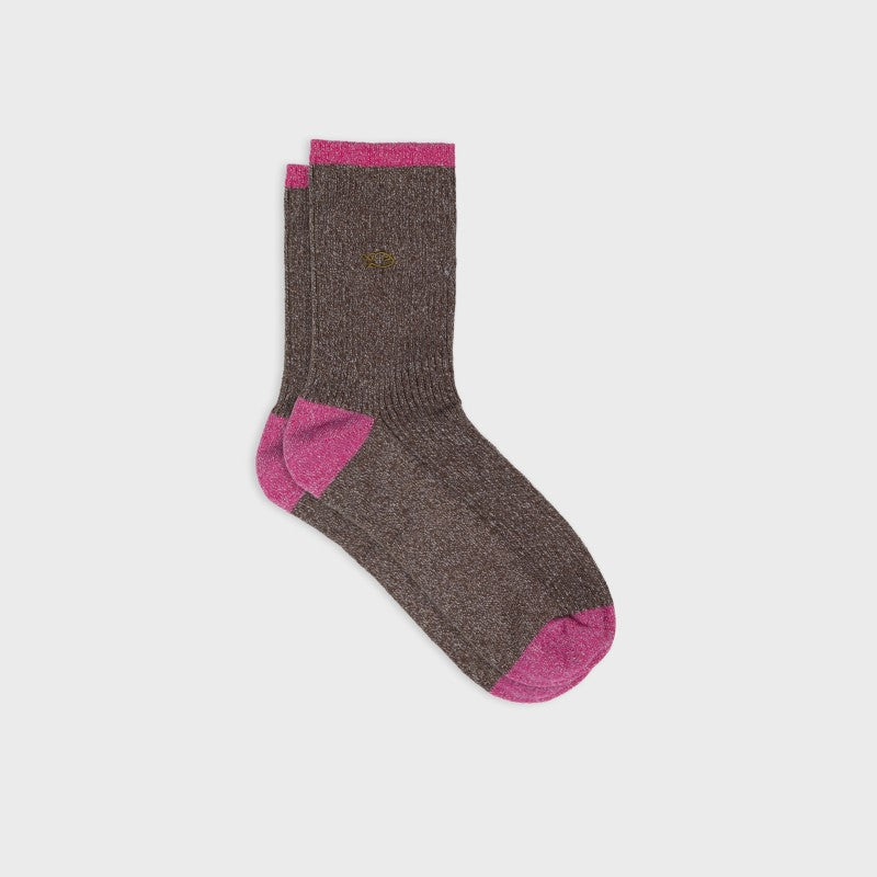 Chaussettes Vintage pailletées - Marron - Taille 37/40