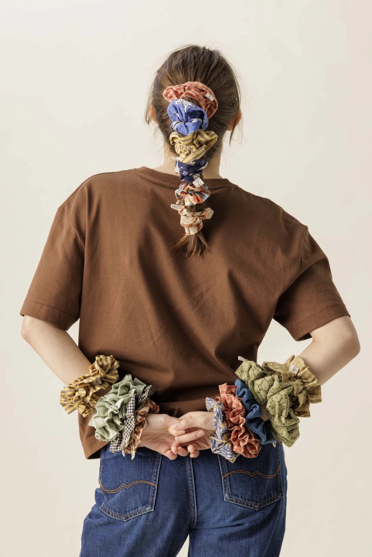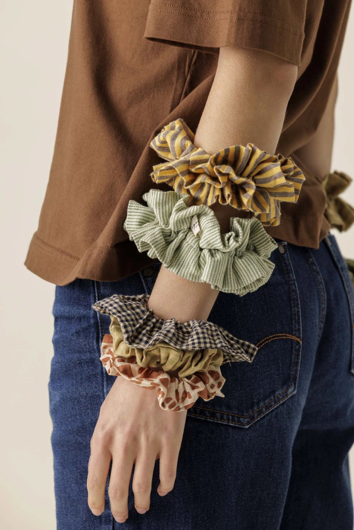 Format grand chouchou : parfait pour cheveux épais ou pour un port sauté sur le bracelet.