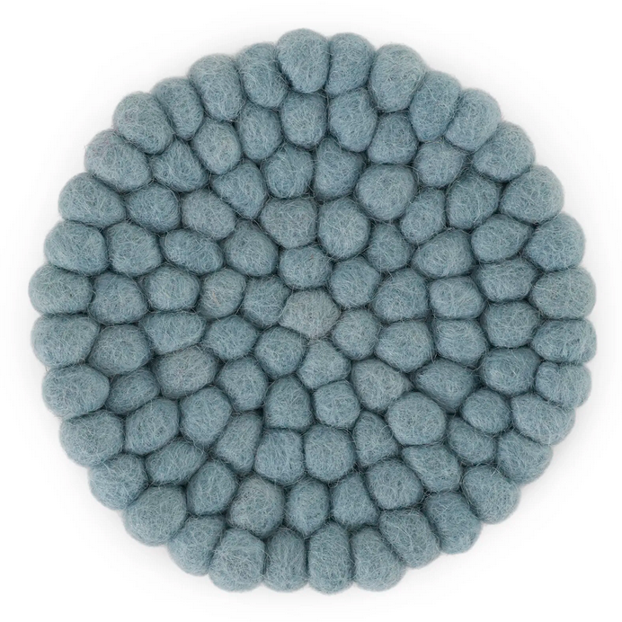Dessous de verres light blue vendus par 2 en feutre de laine fabriqués à la main au Népal, en laine produite en Nouvelle-Zélande.