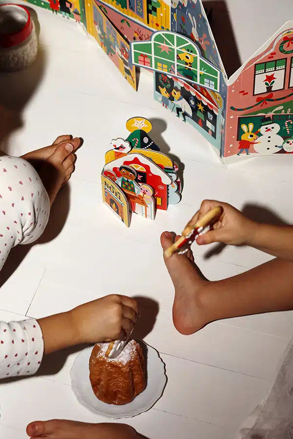 Un imagier pour retrouver en images l’atmosphère si particulière des jours qui précèdent Noël: les chants, les petits sablés, le houx qui décore la maison, la neige, le sapin que l’on va chercher et que l’on décore, l’écriture de la lettre au Père Noël… Le premier livre de Noël de bébé.