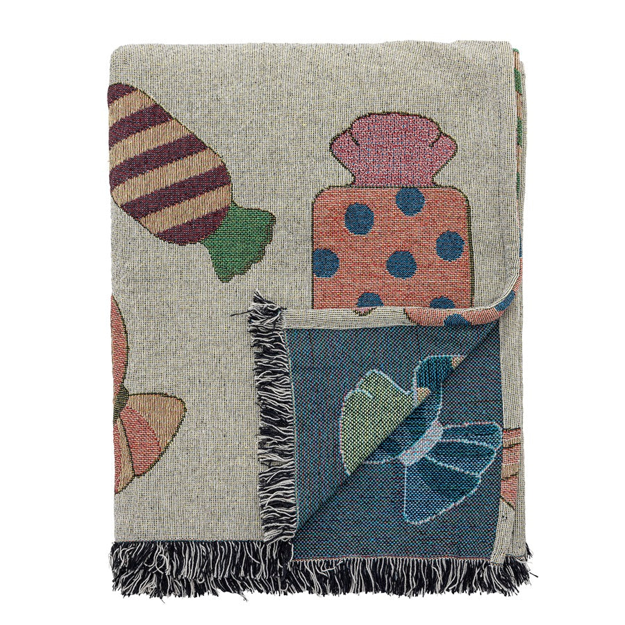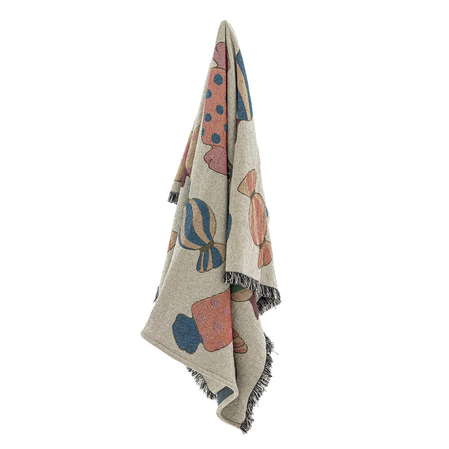 Plaid Caramella en coton recyclé et au motif de gros bonbons et très décoratif, qui sera très joli en décoration dans un salon ou encore une chambre d'adulte ou d'enfant et confortable pour vous réchauffer.
