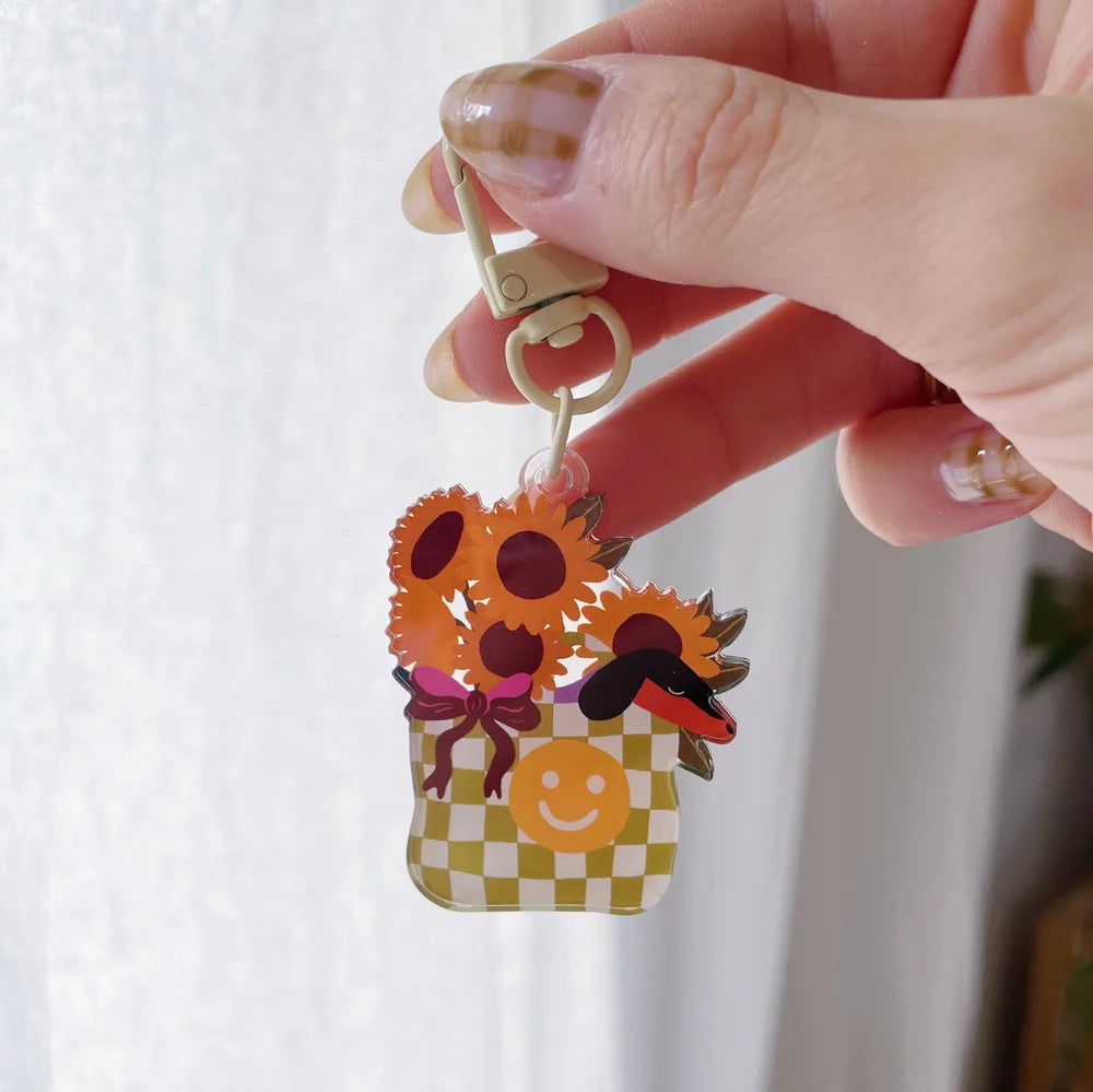Porte-clés Teckel & flowers