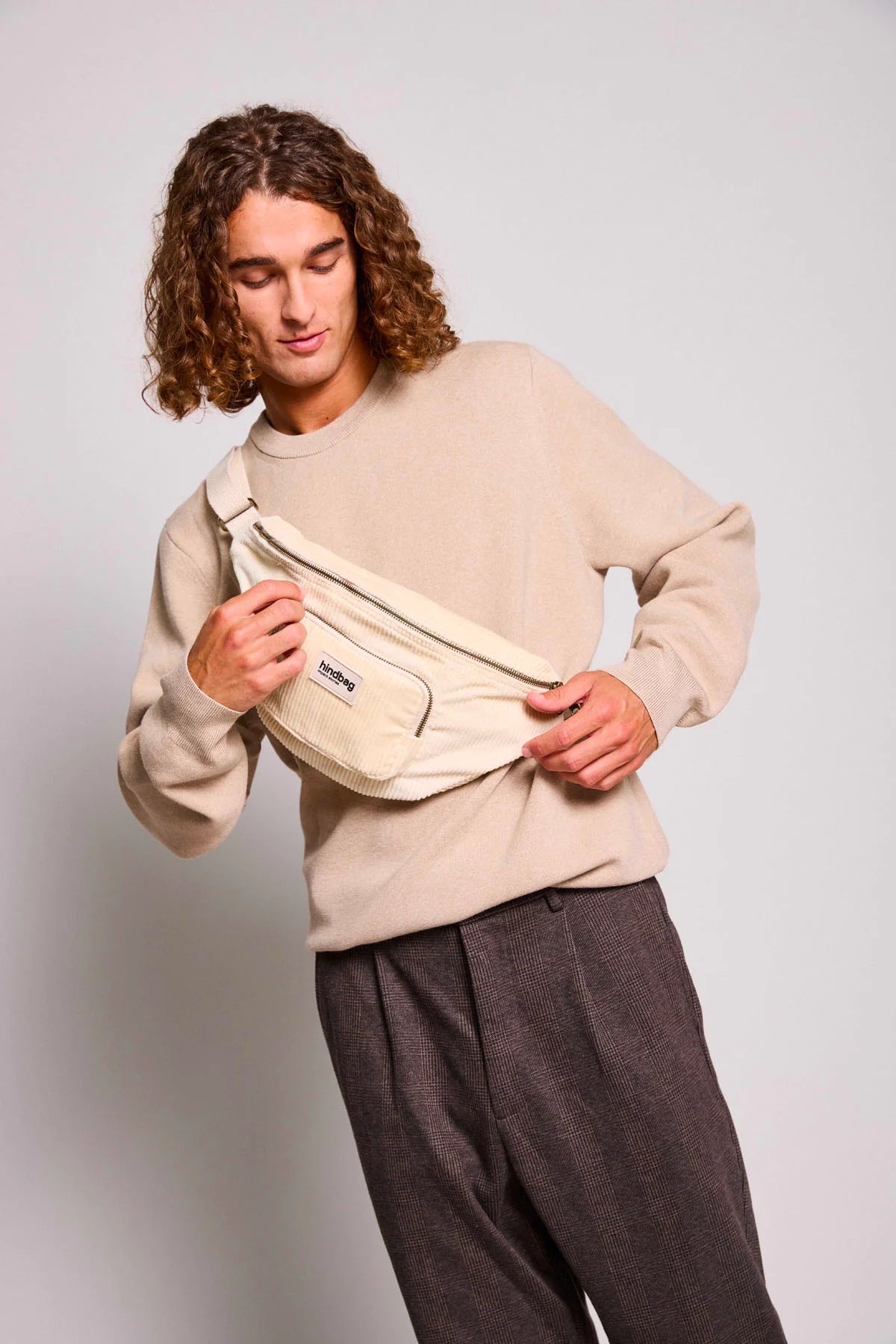 Sac banane XL Sofia en velours côtelé beige par Hindbag