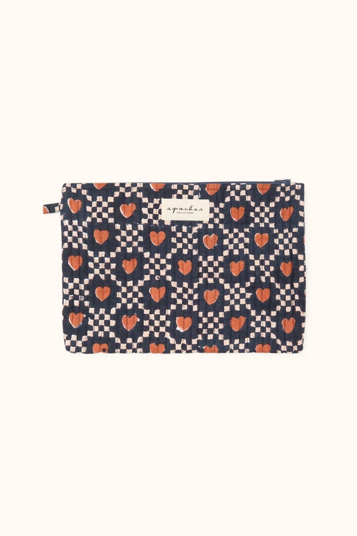 Petite pochette Sana à l'imprimé Amor météorite, exclusif pour Apaches. Vous pourrez y glisser du maquillage, des crayons, votre papiers (passeport, carte d'identité) lors d'un voyage, et bien plus !