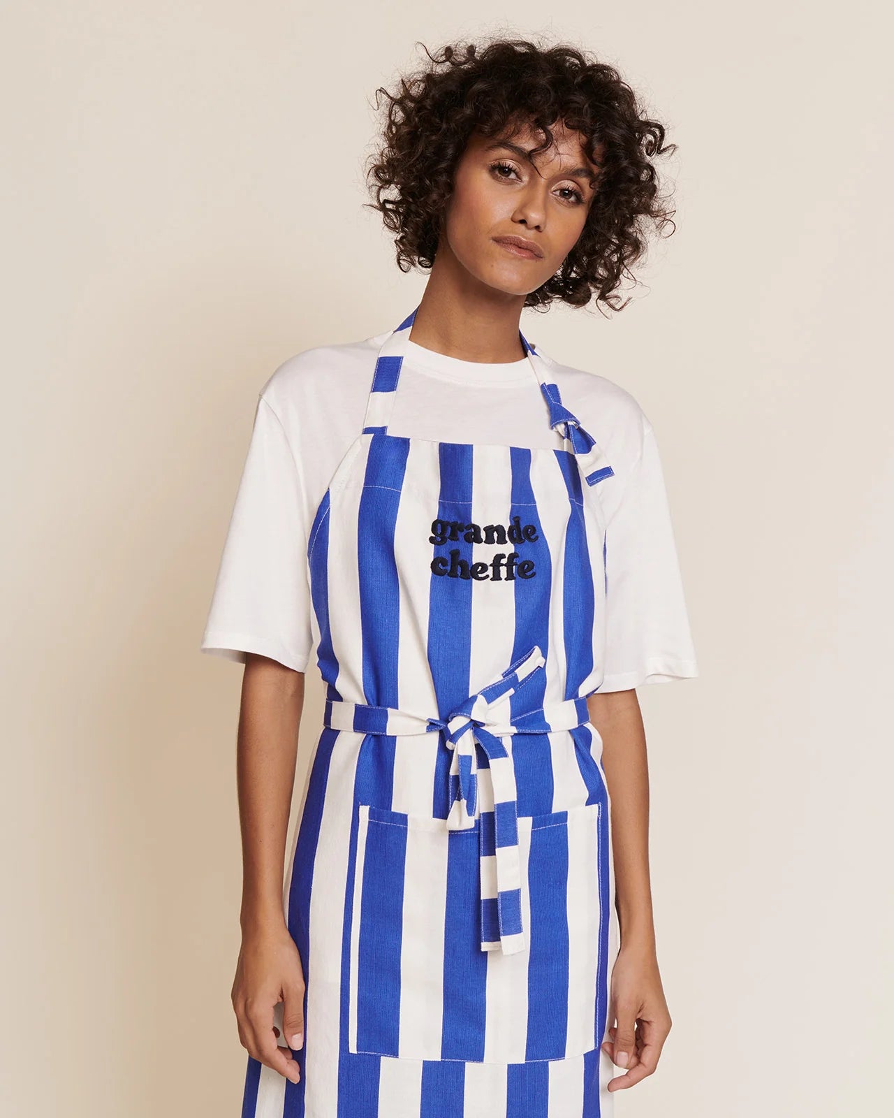Tablier Grande cheffe à rayures bleues par émoi émoi