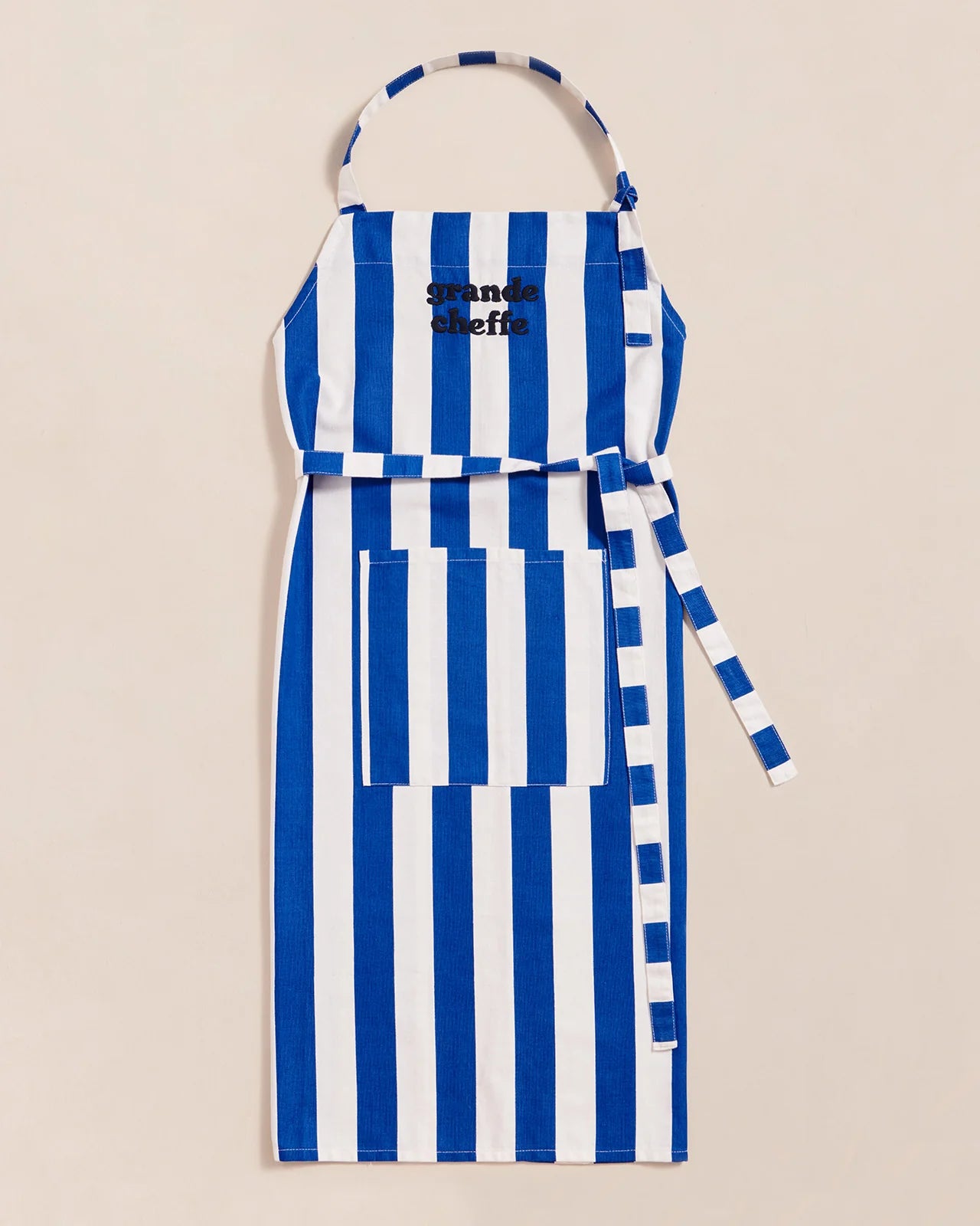 Sa jolie broderie “Grande cheffe” noire apporte une touche d’élégance, tandis que les liens ajustables au cou et à la taille assurent un confort parfait. La grande poche avant (25x23 cm) est idéale pour garder vos ustensiles à portée de main.