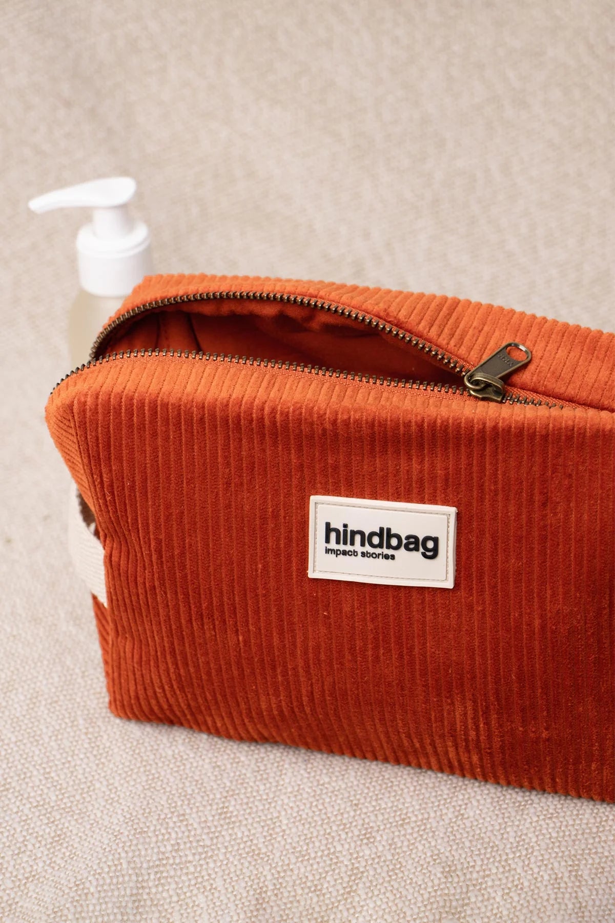 Trousse de toilette Léon en velours côtelé brique par Hindbag